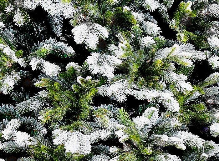 Первые зимние морозы оставили свой ледяной блеск на этих елях. Искусственный иней, используемый в производстве елок данной категории, не имеет запаха, токсичности и крепко держится на ветках. В отличие от снега, иней обволакивает каждую иголочку. Текстура материала создает эффект необыкновенной натуральности.