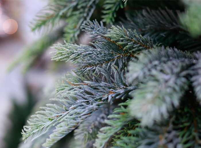 Первые зимние морозы оставили свой ледяной блеск на этих елях. Искусственный иней, используемый в производстве елок данной категории, не имеет запаха, токсичности и крепко держится на ветках. В отличие от снега, иней обволакивает каждую иголочку. Текстура материала создает эффект необыкновенной натуральности.