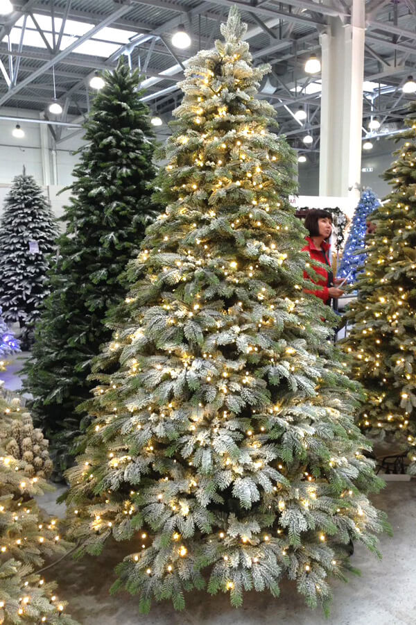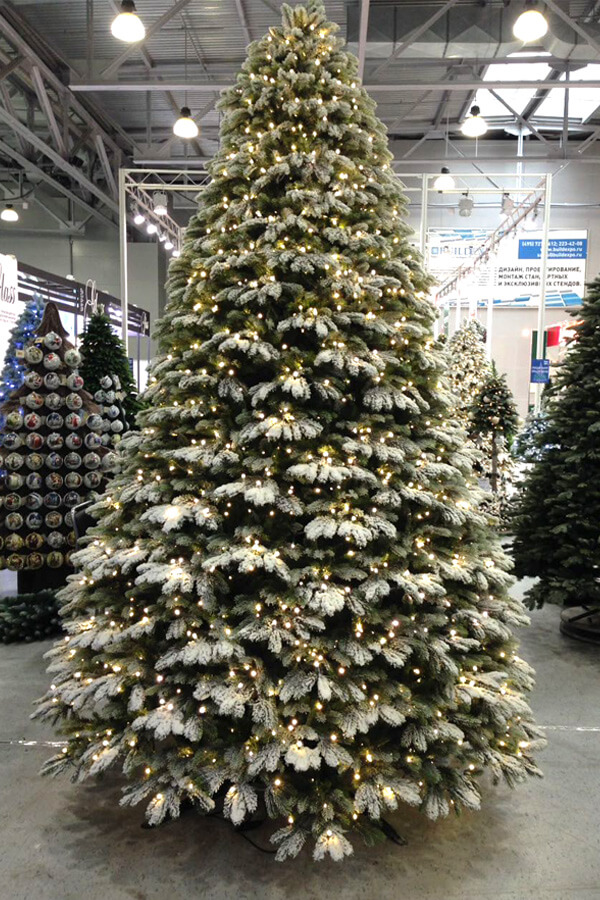 ЕЛЬ В СНЕГУ СО ВСТРОЕННЫМИ ЛАМПОЧКАМИ