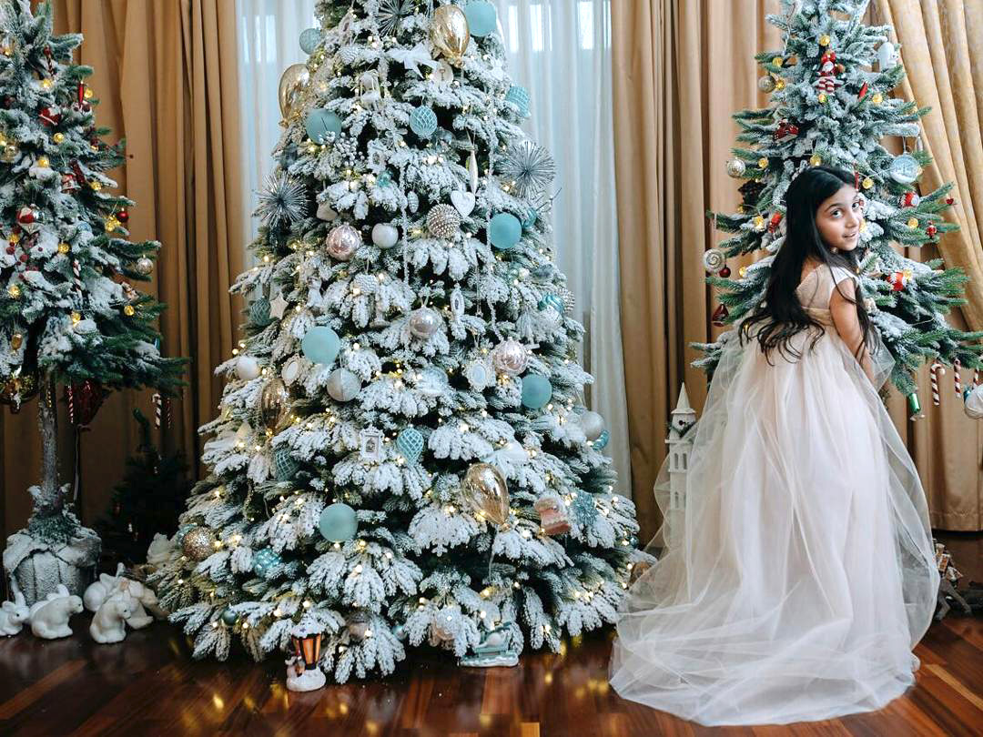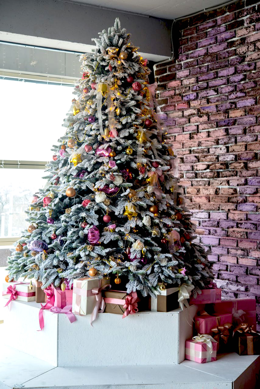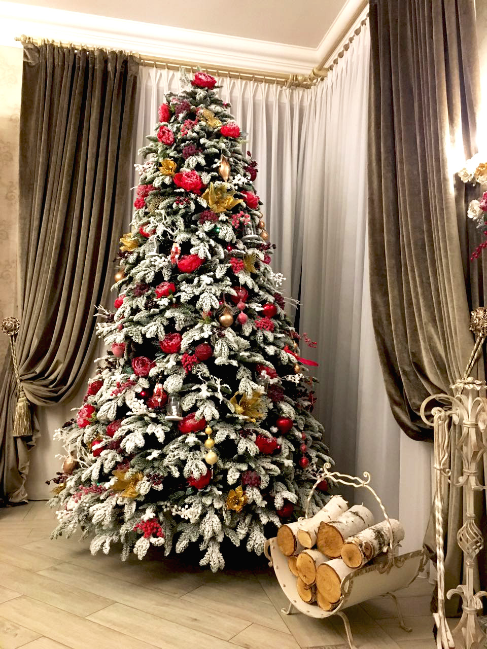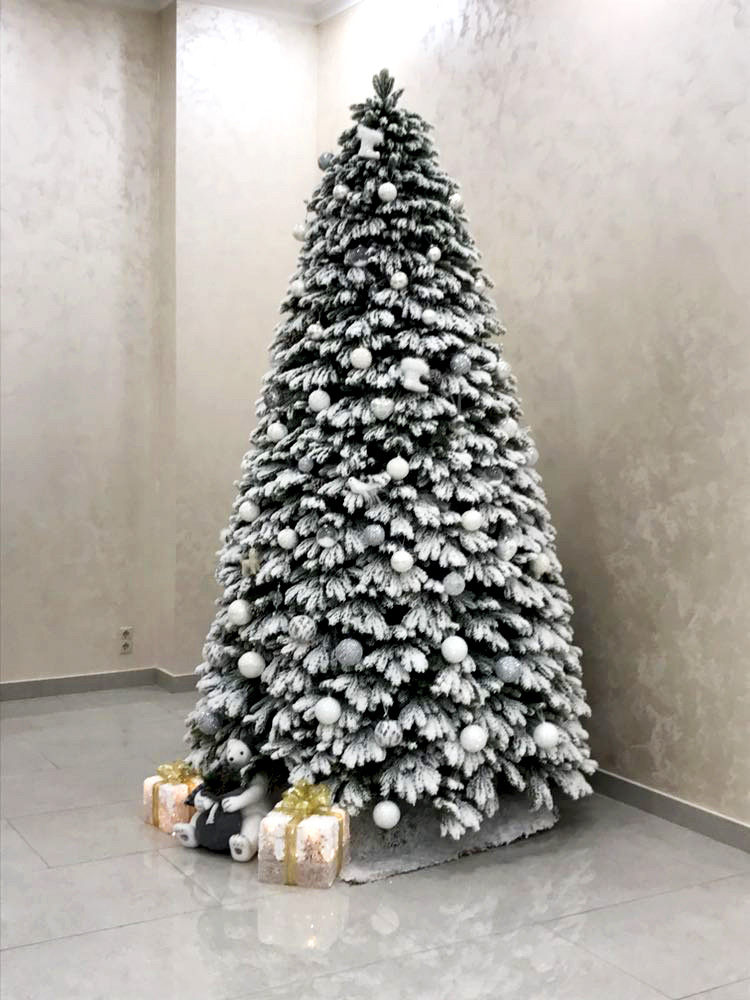 ЕЛЬ В СНЕГУ СО ВСТРОЕННЫМИ ЛАМПОЧКАМИ