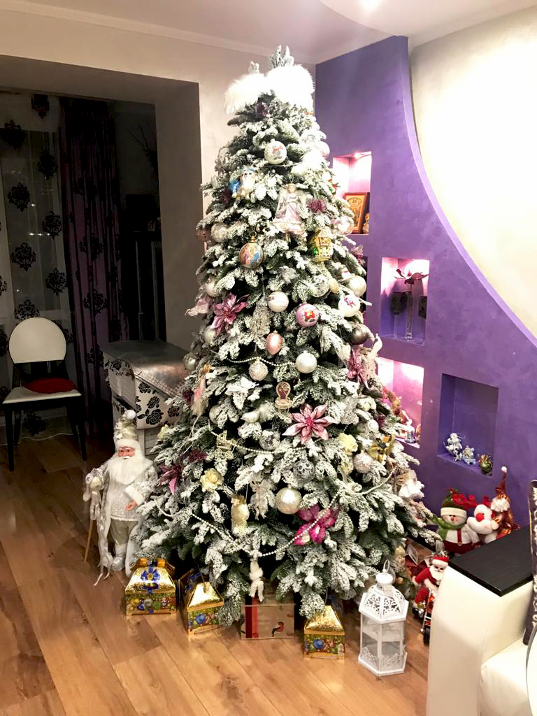 ЕЛЬ В СНЕГУ СО ВСТРОЕННЫМИ ЛАМПОЧКАМИ