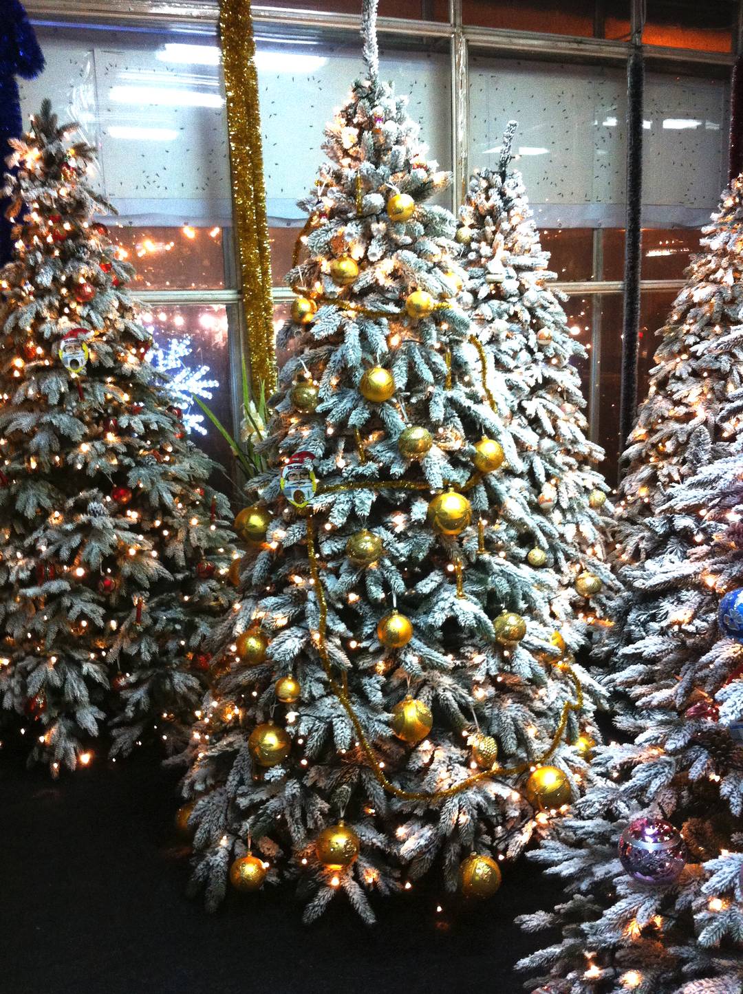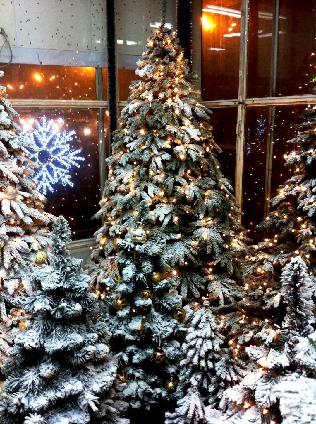 ЕЛЬ В СНЕГУ СО ВСТРОЕННЫМИ ЛАМПОЧКАМИ
