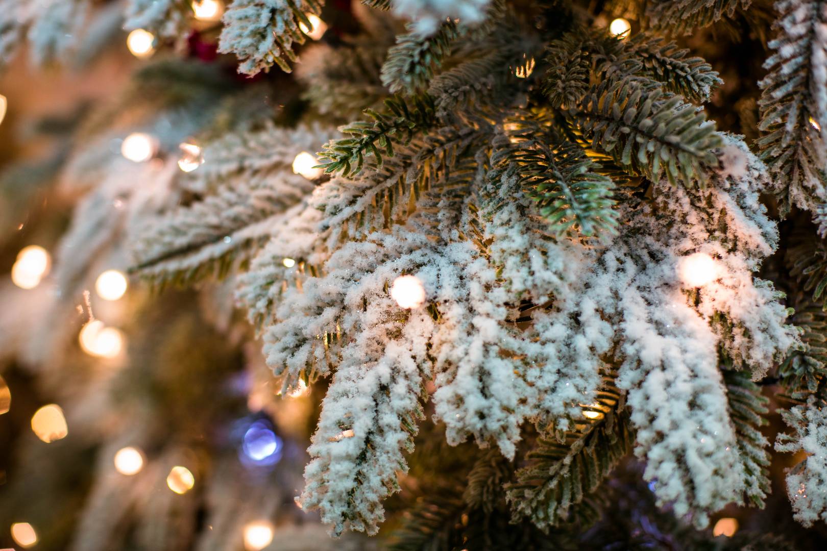 ЕЛЬ В СНЕГУ СО ВСТРОЕННЫМИ ЛАМПОЧКАМИ
